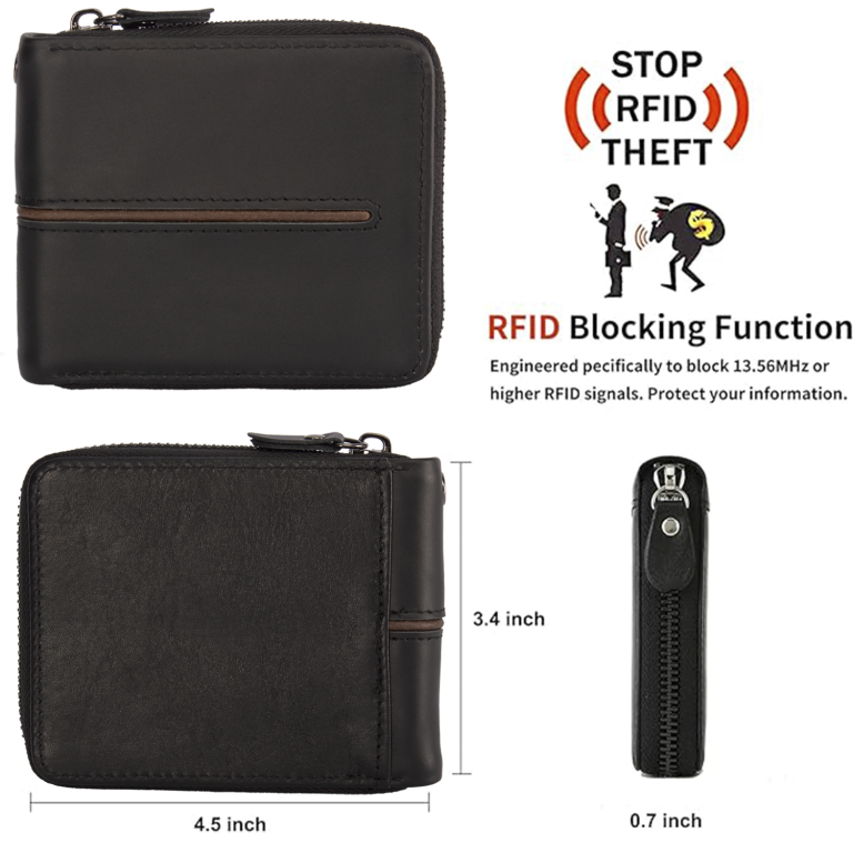 Leather Wallet With Anti-Theft RFID Blocking Cardholder Wallet