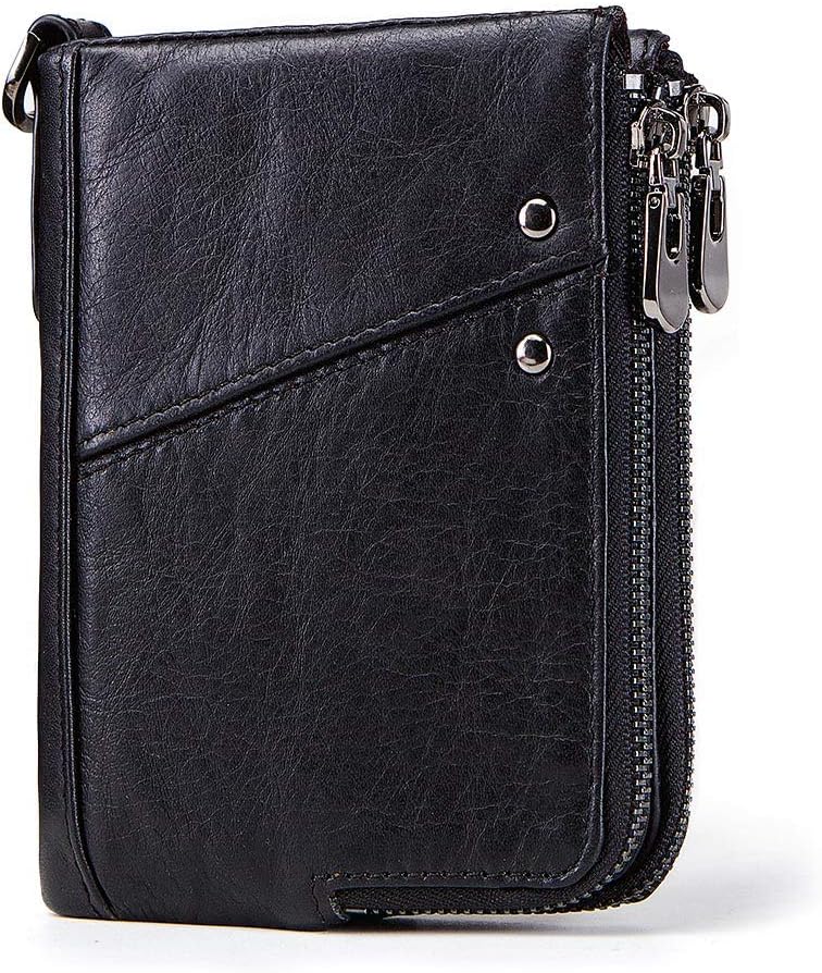 Genuine Leather RFID Protected Wallet With Removable Zipper