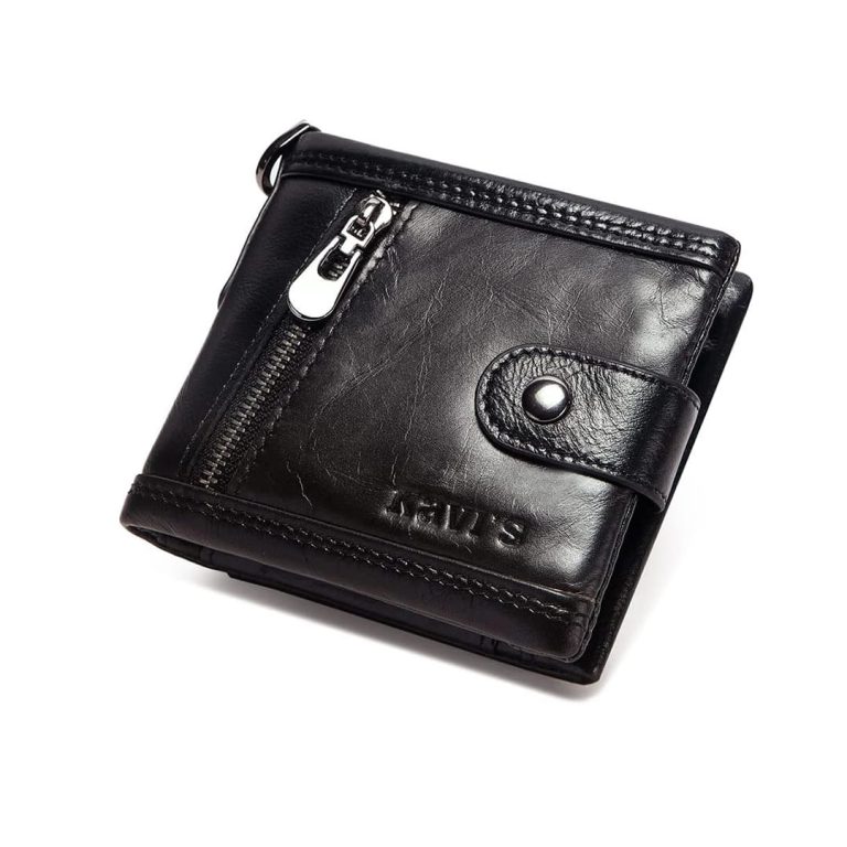 Leather Wallet With Anti-Theft Chain RFID Protected Wallets