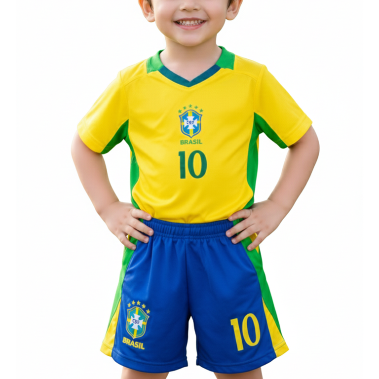 OVERS Brazil Football Jersey Set for Kids, Youth Men – Short Sleeve Soccer Shirt & Shorts