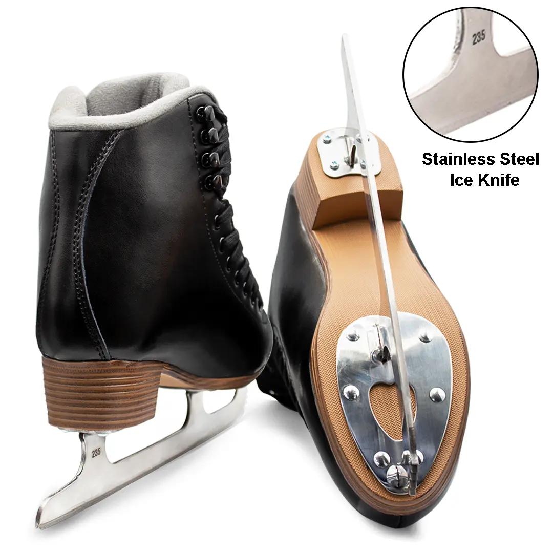 Engineered with a stylized PVC outsole, these skates boast a sleek aesthetic while also delivering durability and reliable traction on the ice. The Ultima MARK II figure blade, securely attached with screws, ensures precision and control with every glide, enabling skaters to execute turns and maneuvers with ease