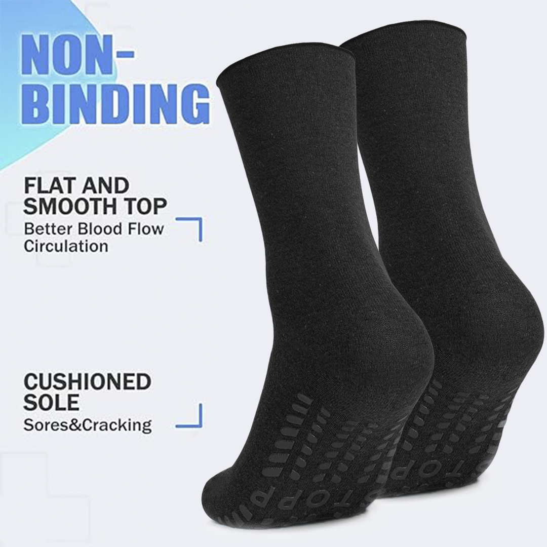 Diabetic non-binding socks, designed with your comfort and health in mind. Our socks are crafted with meticulous attention to detail, offering a unique blend of style, functionality, and bonus features. Featuring a specially engineered design, these socks are expertly crafted to provide a non-binding fit, ensuring optimal blood circulation for individuals managing diabetes. The seamless construction minimizes friction, reducing the risk of irritation and pressure points. The gentle, elasticized tops offer a secure yet non-restrictive hold, promoting foot health without sacrificing style. Available in four vibrant and versatile colors, our diabetic non-binding socks cater to your individual preferences and fashion sensibilities. Whether you prefer classic neutrals or want to add a pop of color to your wardrobe, our selection has something for everyone. As an added bonus, each pair comes with a unique feature that sets them apart. Diabetic-friendly footwear, proudly presents these socks with an extra touch of innovation. [Bonus Feature] ensures that you not only experience unparalleled comfort but also enjoy additional benefits that go beyond conventional sock designs.