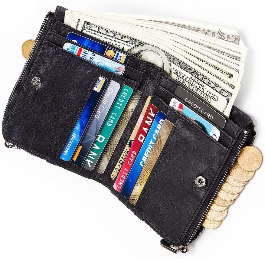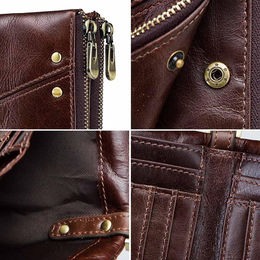 Excellent Handmade: This bifold zip-around wallet made by full handcraft with great attention to detail. Give user a traditional high quality and feeling.Our wallets are equipped with advanced RFID security technology, unique metal composites, Your credit cards, debit cards, driving license and ID cards will be protected effectively.Quality Assurance and Money Back Guarantee: We not only provide better products, but also provide the best service. If you are dissatisfied with this wallet, we will give you a full refund or replacement.Note: Because the leather is natural, not artificial, there are subtle differences in color and texture from the picture. There is a slight deviation in the size of the manual measurement.
