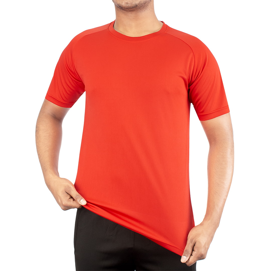 Training tee Made of 85% polyester and 15% spandex. High-performance, quick-drying fabric