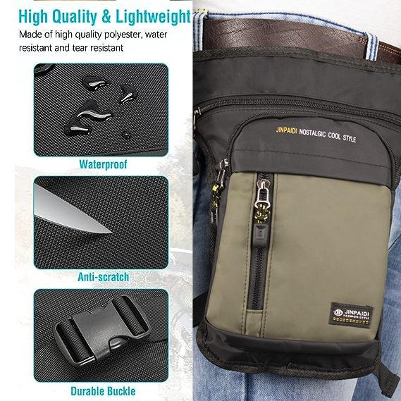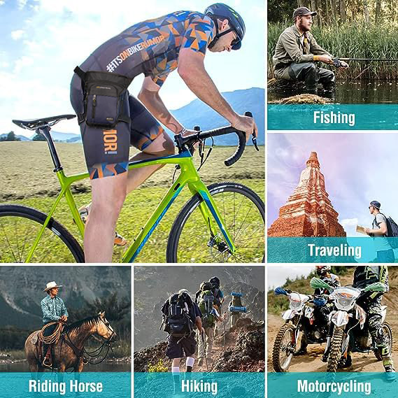 Super Big Capacity The keys and glasses can be hung up to the Carabiner,and the outermost zipper can be opened to expand the room from 2.8L to 5.6L really big capacity. The motorcycle leg bag can store two bottles of water,cash, tickets, passports and cell phone, keeping important items safe while traveling. *Fitment Useful and effective: make your hands free while you are camping, traveling or Driving a motorcycle Fit for outdoor, travel, shopping, beach, Sports, Fashion.Suitable for men and women, adults and kids