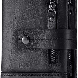 Leather Wallet Chain Bi-fold With RFID Blocking Security Wallet