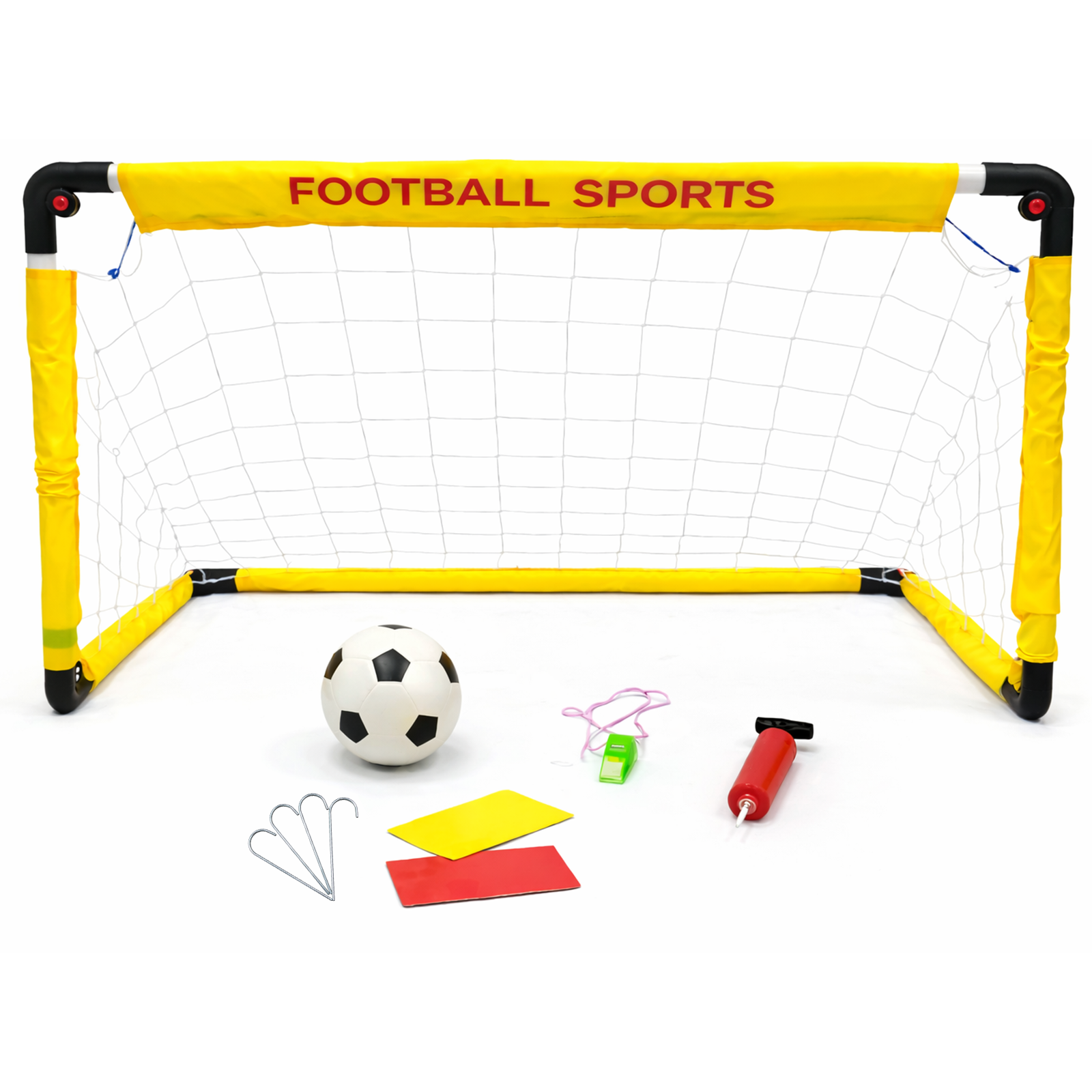 Bring the excitement of football right to your home with this Portable Kids Soccer Goal Set, designed for endless fun, skill-building, and active play. Whether in the backyard, garden, park, or even indoors, this complete mini football net set is perfect for young players who love to practice and play anytime, anywhere. Crafted with a durable and lightweight frame, this kids’ soccer goal is easy to assemble and disassemble, making it ideal for quick setup and convenient storage. The strong netting ensures long-lasting performance, while the sturdy structure stays stable during intense play sessions. Perfect for beginners and young athletes, this set helps improve shooting accuracy, coordination, and overall football skills. This all-in-one football training kit includes a mini soccer ball, air pump, and essential training accessories, so your child can start playing right out of the box. The included carry setup makes it simple to transport, allowing kids to enjoy football practice at home, in the garden, or on the go. Designed for indoor and outdoor use, this versatile soccer goal is suitable for various surfaces including grass, concrete, and indoor floors. Its compact size makes it perfect for small spaces while still providing an authentic football experience. Whether it’s for solo practice, friendly matches, or family fun, this kids soccer goal set is a fantastic way to keep children active, engaged, and away from screens.