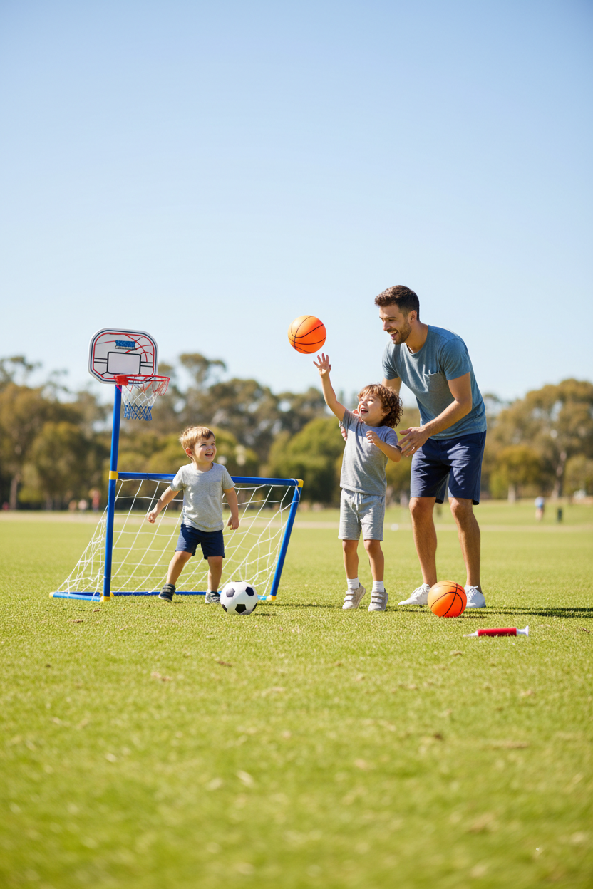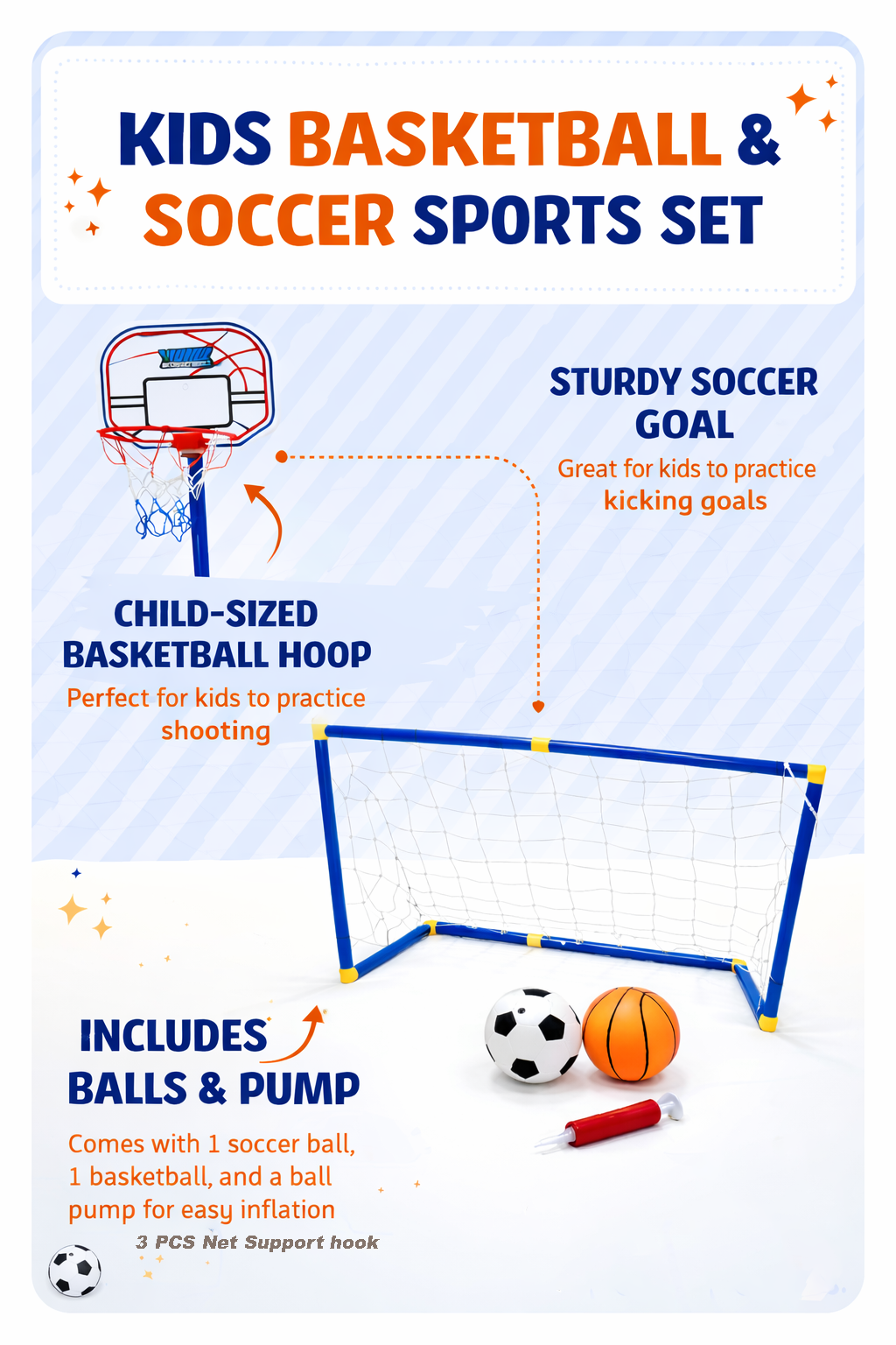 2-in-1 Kids Sports Playset – Basketball Hoop & Soccer Goal Combo for Indoor & Outdoor Fun