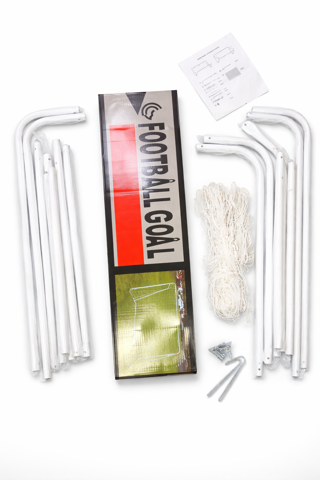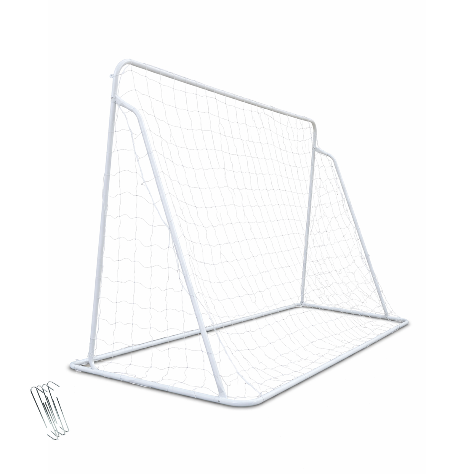 Crafted with a heavy-duty metal frame, this soccer goal is made to withstand powerful shots and long-term outdoor use. The included ground stakes keep the goal firmly in place, even during intense play.