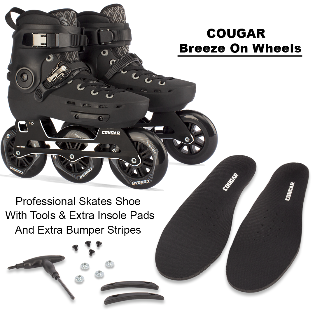 Cougar 3 Wheels Black Professional Inline Skates With 110mm Wheels Size