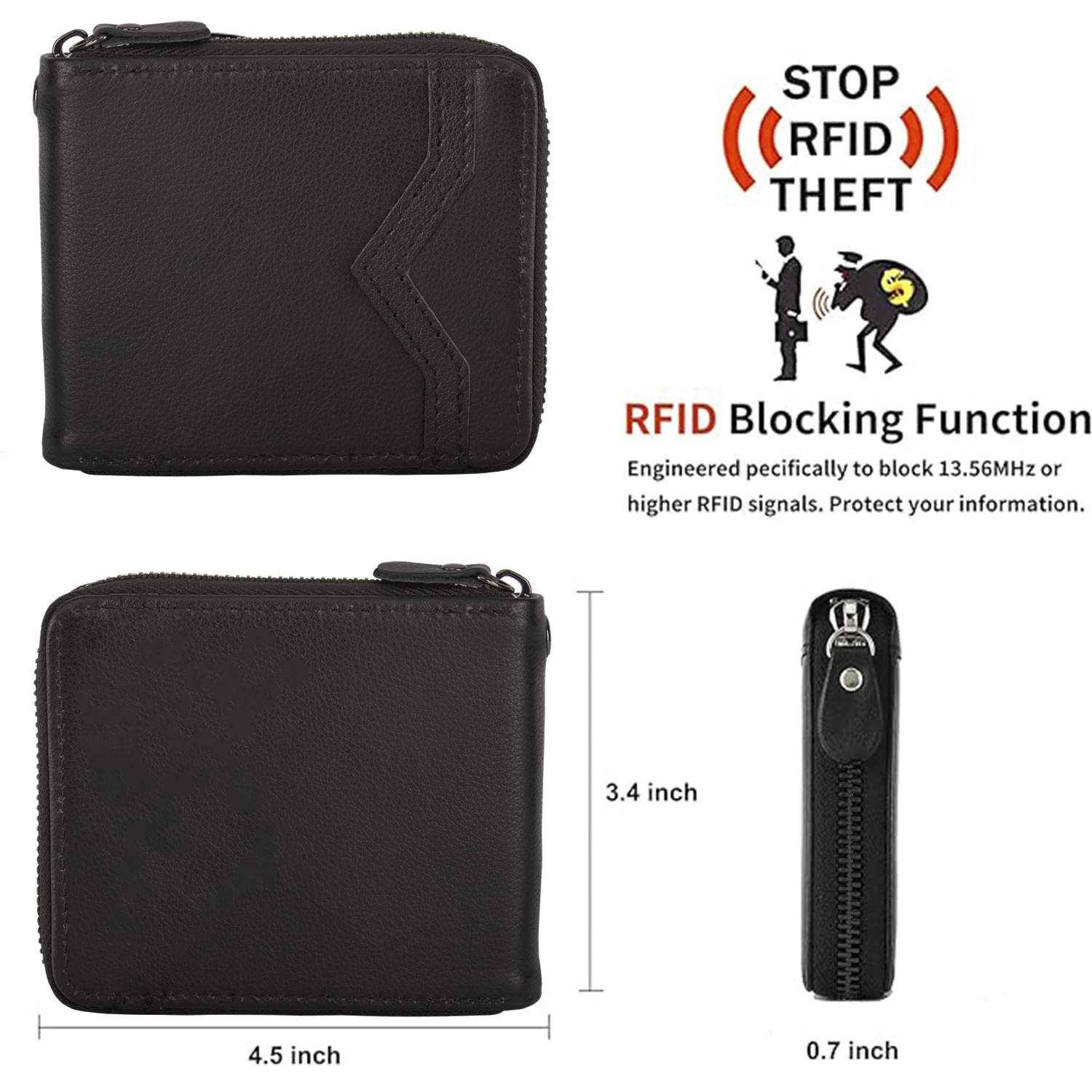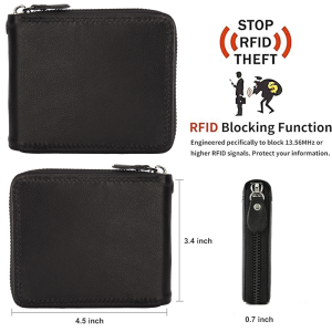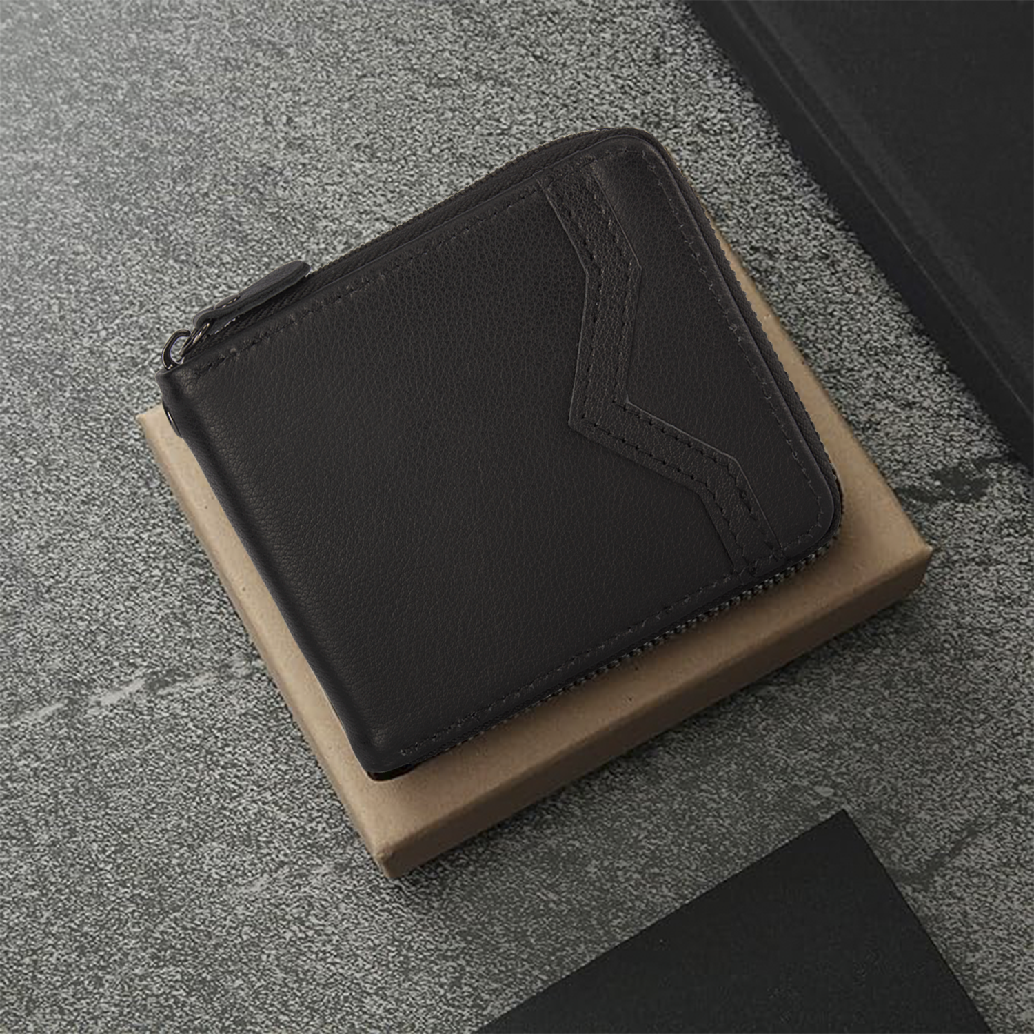 Wallets for men have full zipper closure which provides extra security and prevents items from falling out.