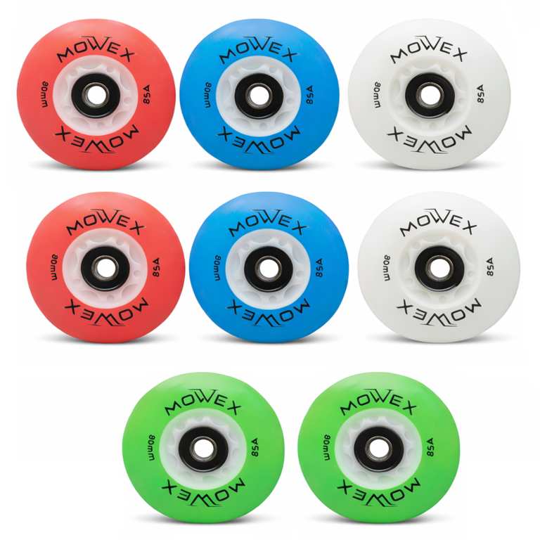 MOWEX 8pcs Multicolored LED Flash Inline Skates Wheels with ABEC-9 Bearings.